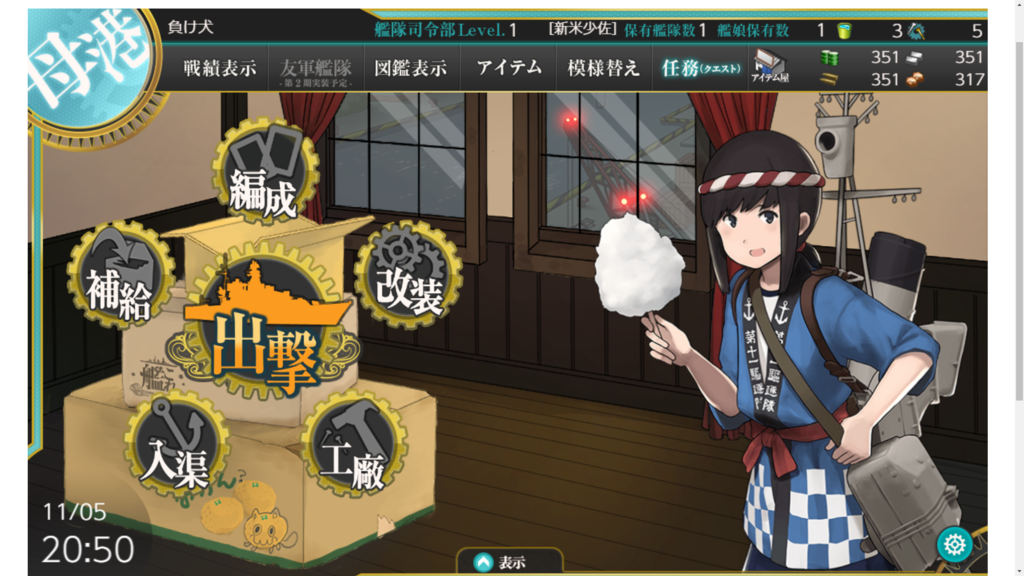 これでケッコンカッコカリ(能力強化)が出来ますが、それに関しては保留していたりする。